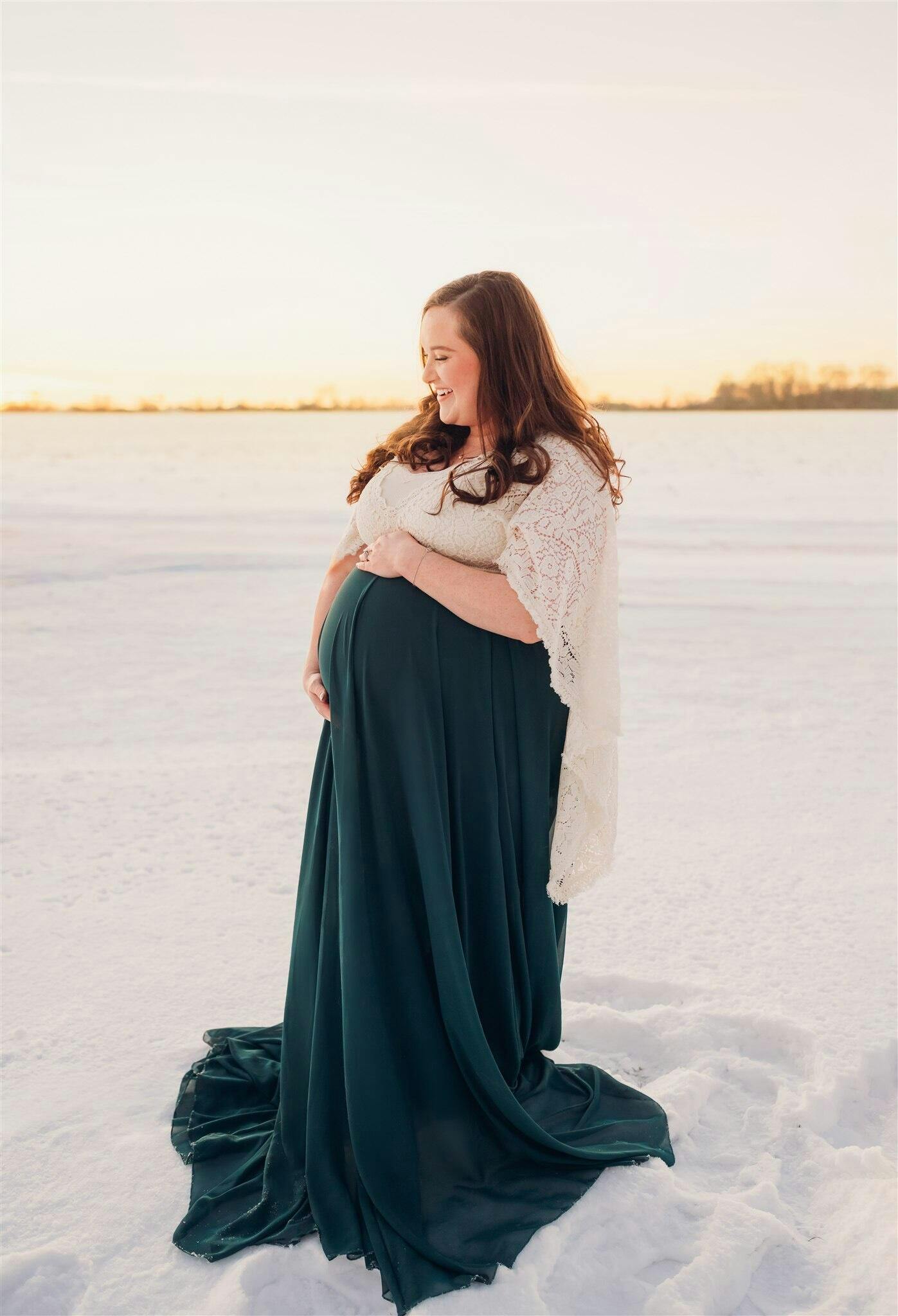 Chiffon Long Maternity Skirt | Hunter Green Full Circle Semi-Sheer for Photoshoot, One Size