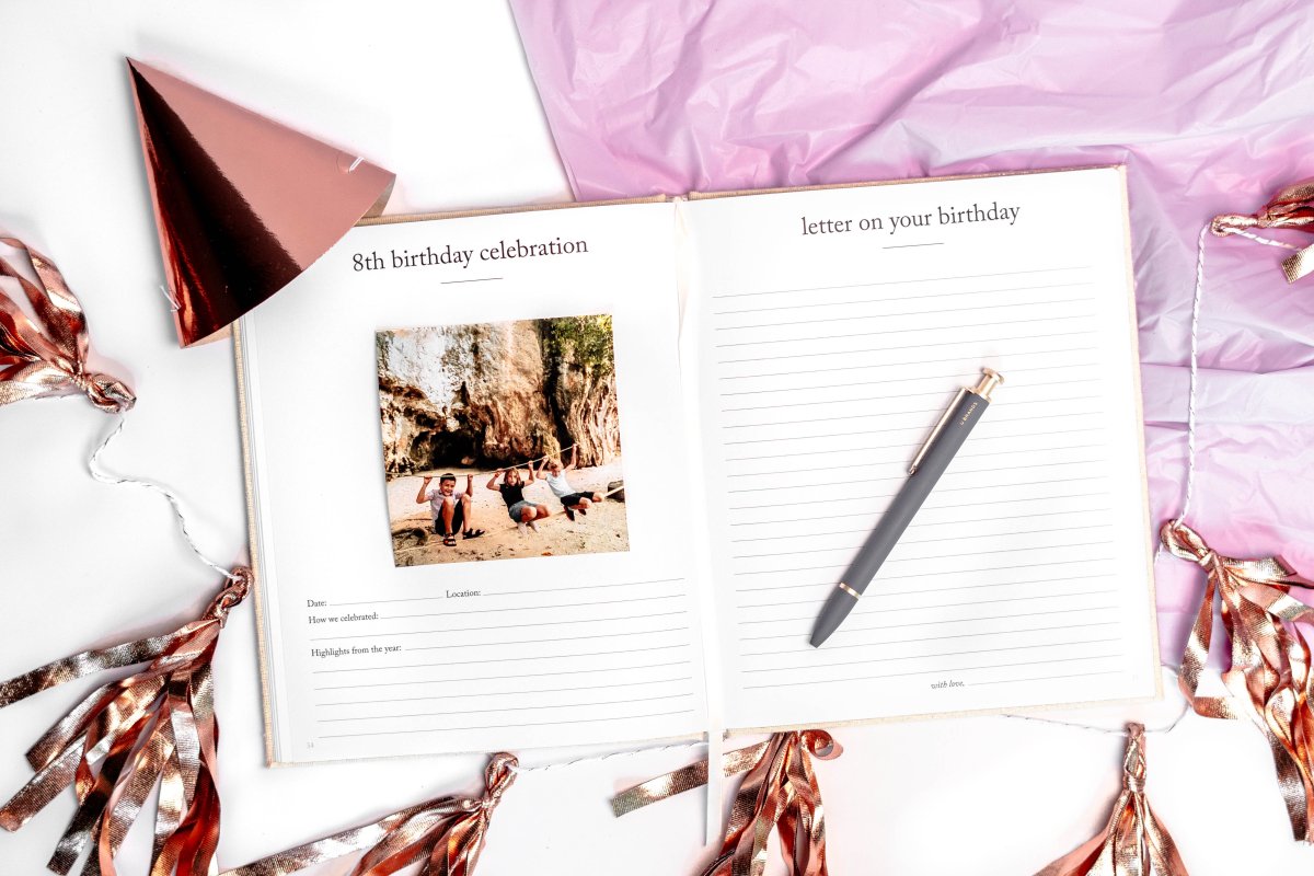 Celebrate each birthday with this beautiful keepsake birthday book! Capture the memories from their special day and write a letter to your child each year with this simple birthday journal. This is our simplest childhood memory book that only requires 30 minutes-an hour each year.