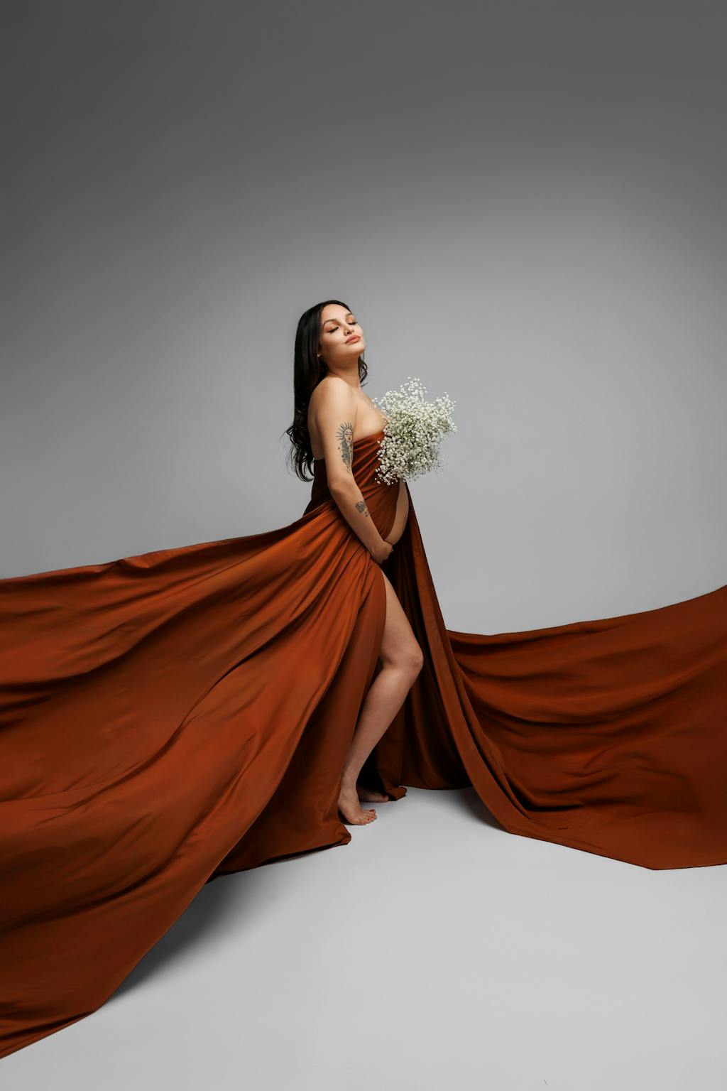 am absolutely in love with this silk fabric! The quality is incredible — soft, lightweight, and flows beautifully in front of the camera. The movement it creates during maternity sessions is pure magic. It photographs like a dream and adds such an elegant, high-end feel to my studio work.