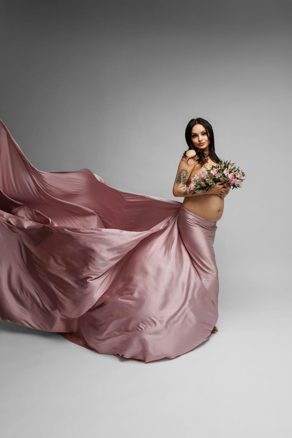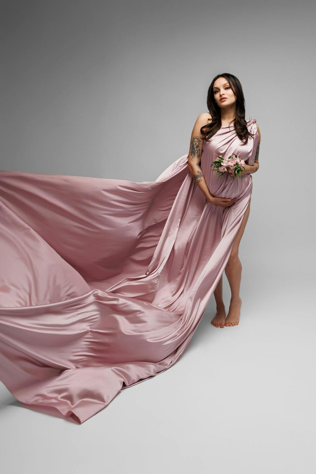 Extra Long Silky Maternity Photoshoot Fabric | Pink Orchid Faux Silk Drape Tossing Scarf w/ Sewn Edge 5 Yards For Flying Dress Effect (Copy) - Chicaboo